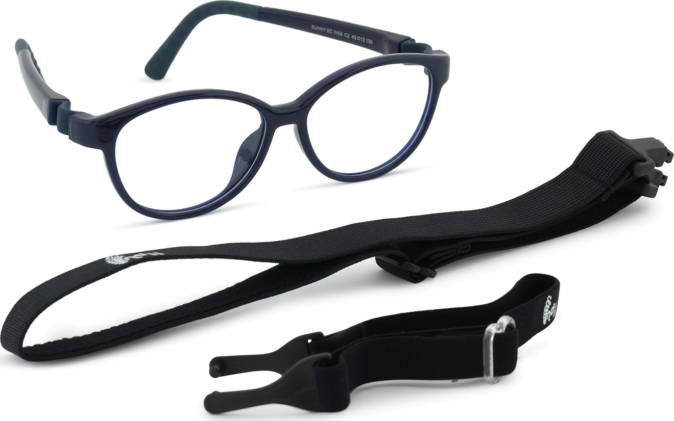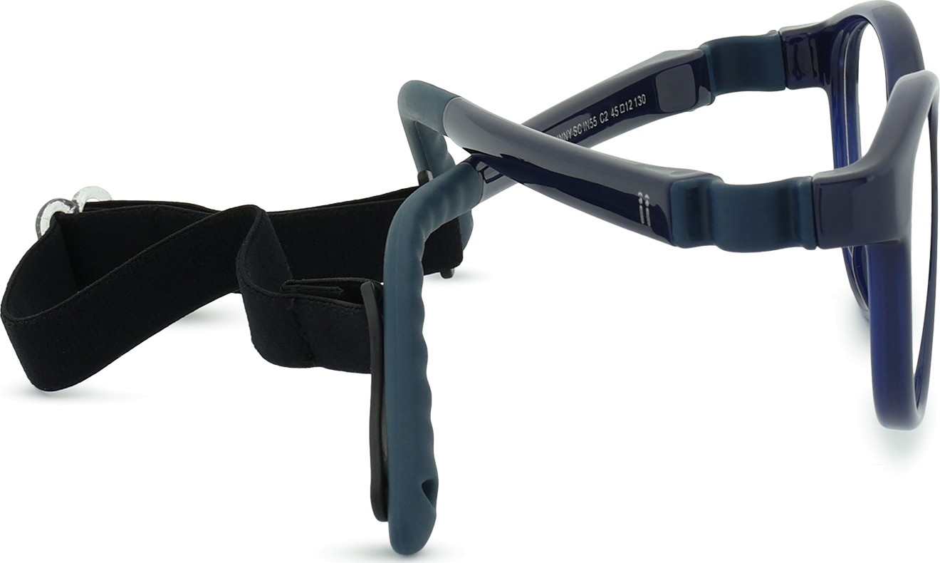 Indii Kids IN ir divas regulējamas tekstila siksniņas, kas samazina briļļu pazaudēšanas risku un nodrošina labāku fiksāciju uz galvas dažādu bērnu aktivitāšu laikā.