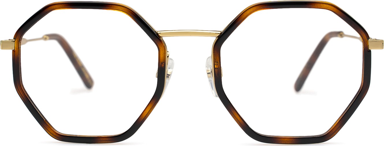 - Briļļu ietvars ir izgatavots no metāla un plastmasas kombinācijas. Tas nodrošina augstu izturību, stabilitāti un neparastu stilu.