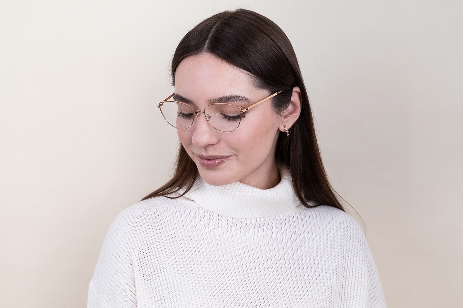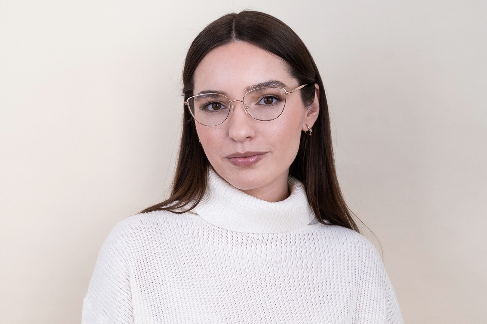 - Zelta rāmja krāsa lieliski sader ar siltu ādas toni un tumši brūniem matiem.
