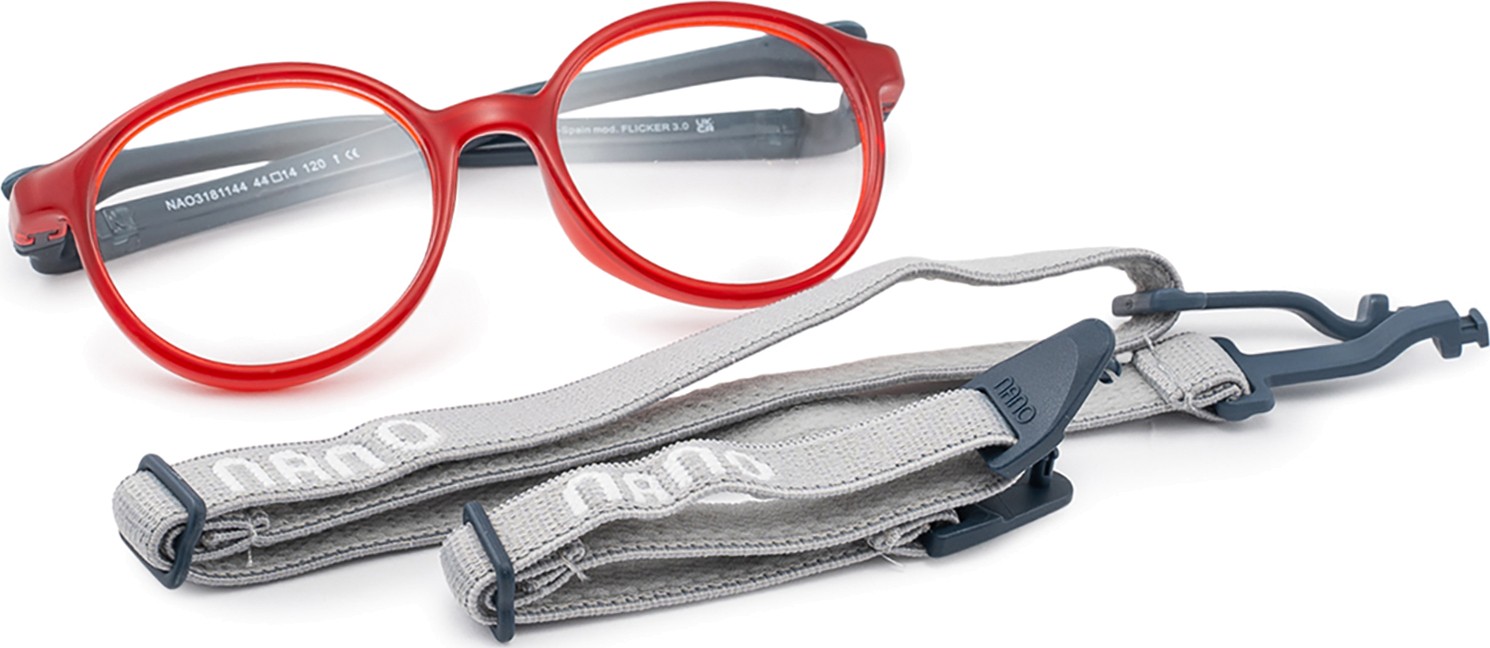 Flicker 3.0 ir divas regulējamas tekstila siksniņas, kas samazina briļļu pazaudēšanas risku un nodrošina labāku fiksāciju uz galvas dažādu bērnu aktivitāšu laikā.