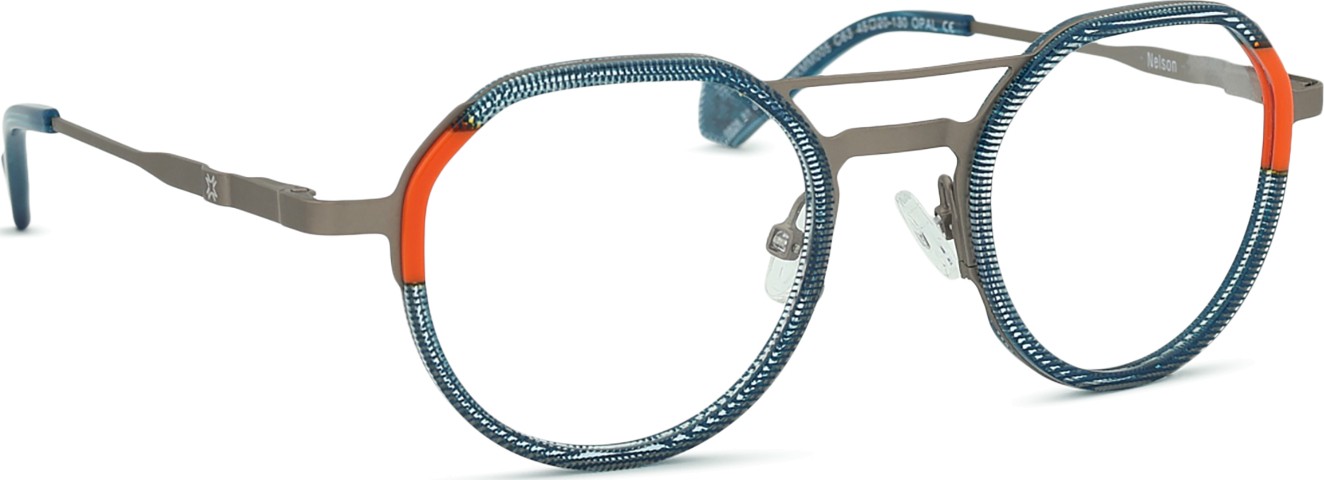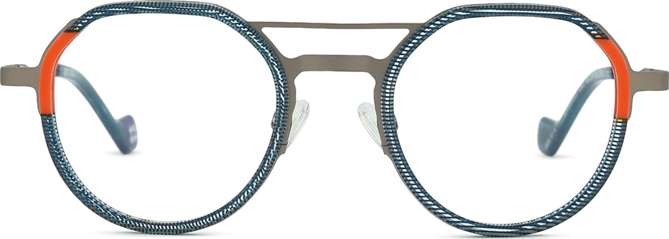 - Briļļu ietvars ir izgatavots no metāla un plastmasas kombinācijas. Tas nodrošina augstu izturību, stabilitāti un neparastu stilu.
