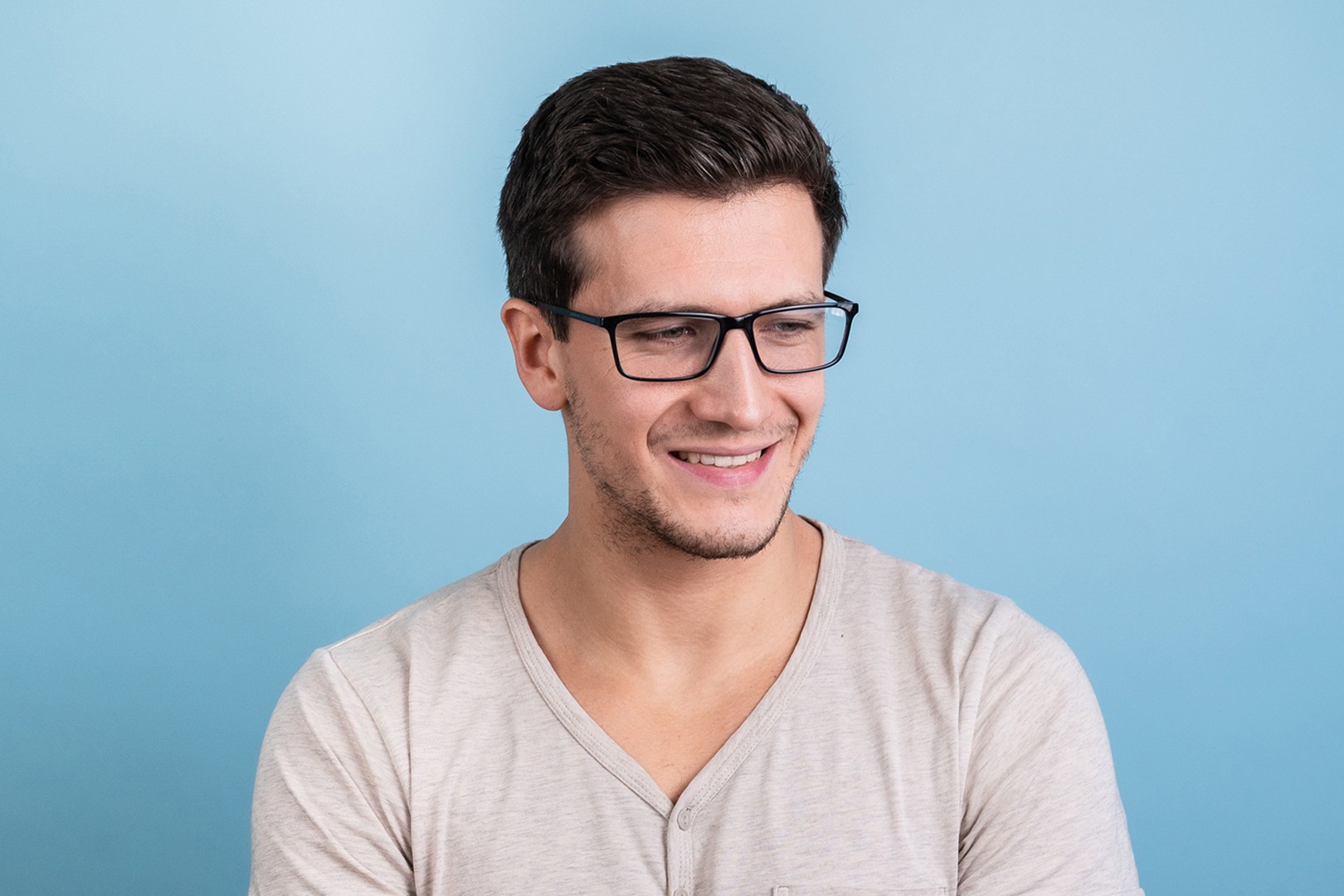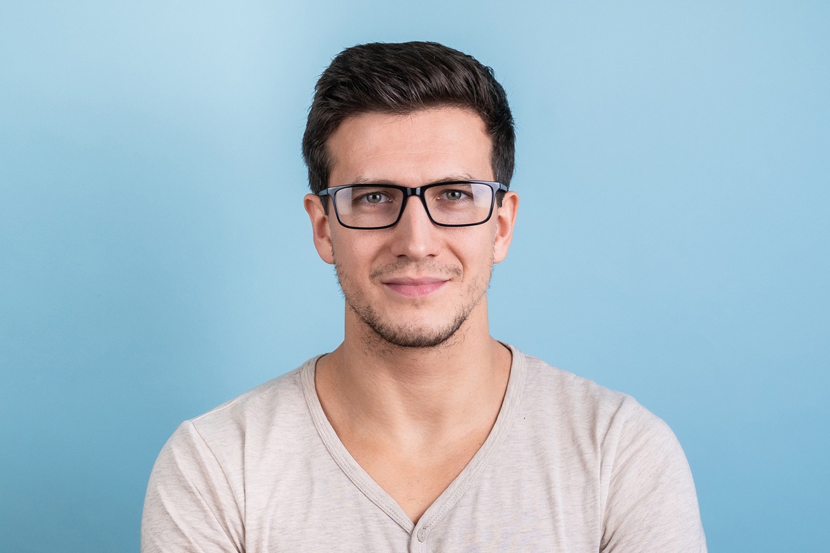 - Синий цвет оправы идеально сочетается с холодным оттенком кожи и светло-каштановыми, черными или светло-русыми волосами.
