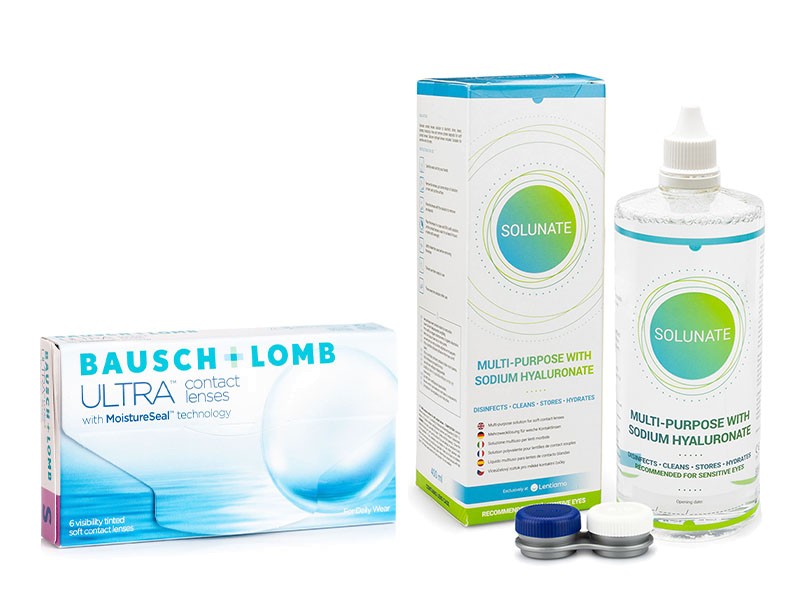 Мы предлагаем экономичный набор для месячных контактных линз Bausch + Lomb ULTRA с раствором Solunate Multi-Purpose 400 мл.