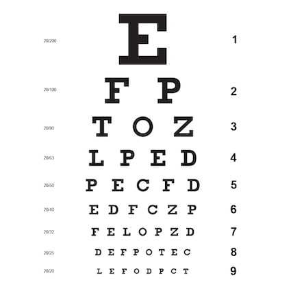 - Зрение 20/20: если вы чётко видите до девятой строки, ваше зрение — 20/20. Это означает, что вы можете прочитать ту же строку букв с расстояния 20 футов (6,09 метра), с которого человек с нормальным зрением также читает её с 20 футов. Такое зрение считается идеальным по медицинским стандартам.