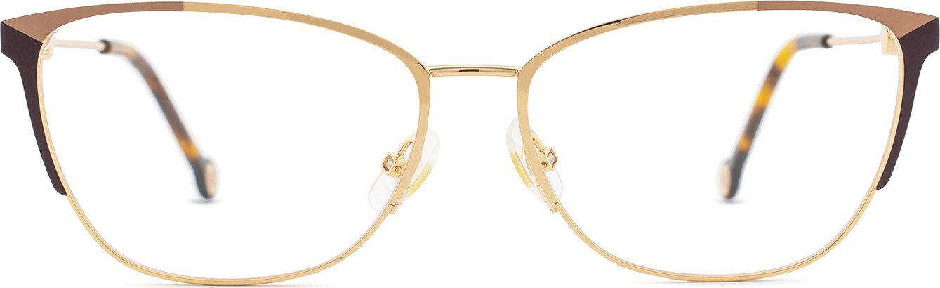 - Золотой цвет оправы идеально сочетается с теплым оттенком кожи и темно- каштановыми волосами.