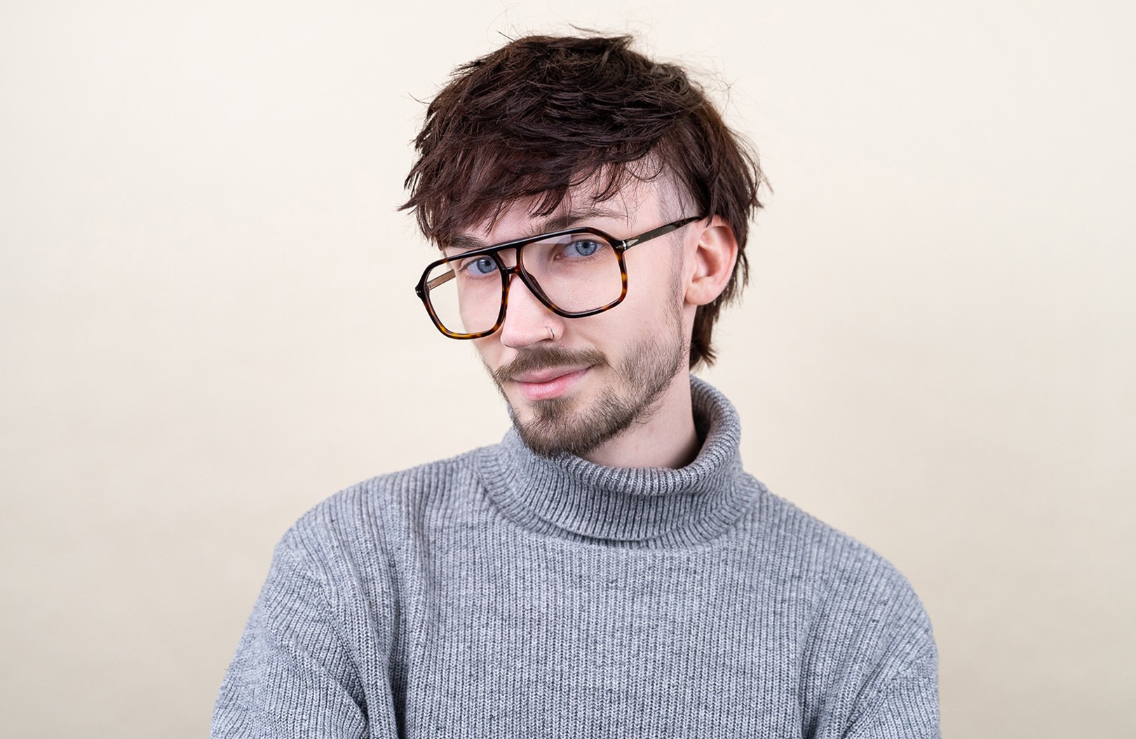 - Коричневый цвет оправы идеально сочетается с теплым оттенком кожи и светлыми коричневыми, черными или темно-русыми волосами.