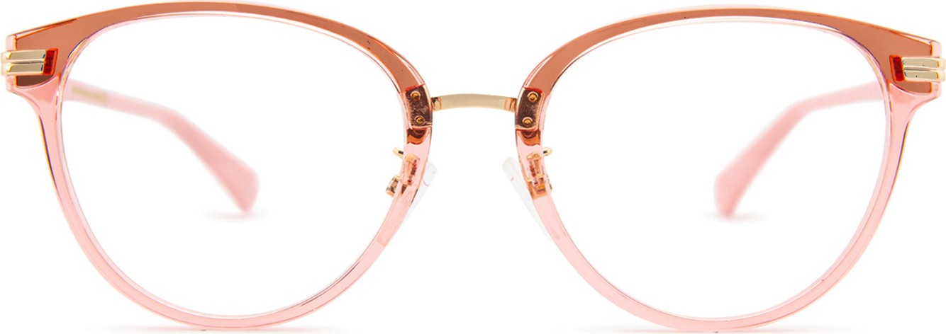 - Розовый цвет оправы идеально сочетается с холодным тоном кожи и светло-каштановыми или светло-русыми волосами.