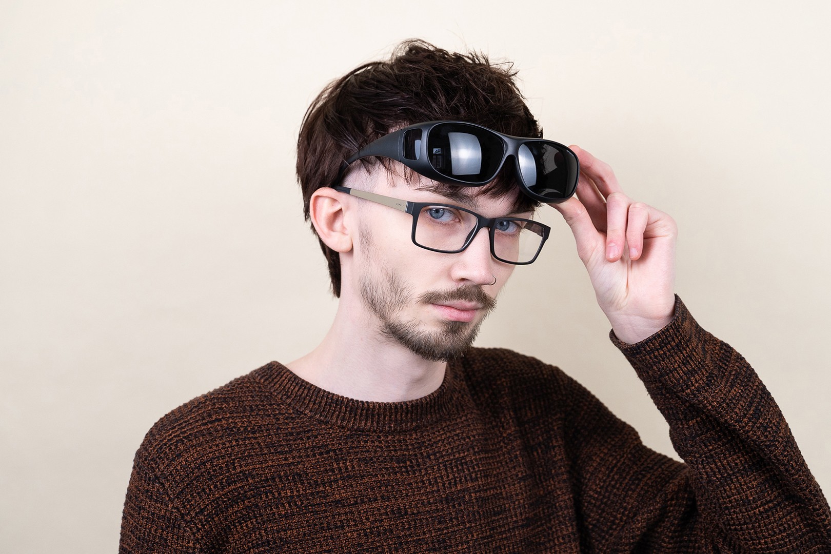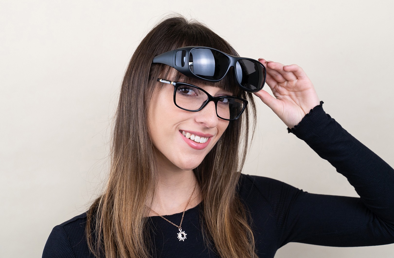 • Оправы и дужки солнцезащитных очков Suncover, также известных как очки, надеваемые поверх, имеют специальную конструкцию, которая позволяет прикреплять их ко многим типам корригирующих очков. Они работают так же, как обычные солнцезащитные очки, а ваши корригирующие очки легко скрываются за ними. Вам больше не нужно выбирать между корригирующими очками и солнцезащитными очками в яркие дни – защитите свои глаза от солнечного света, не отказываясь от остроты зрения. Солнцезащитные очки Suncover работают в любых ситуациях, будь то вождение автомобиля или мотоцикла, прогулка или отдых на пляже.