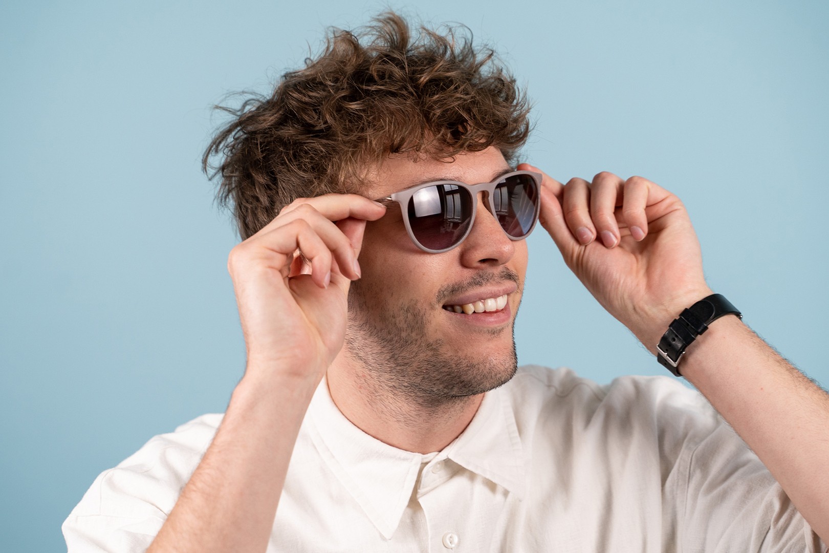 • Круглые оправы солнцезащитных очков — идеальный выбор для людей с квадратной или овальной формой лица.