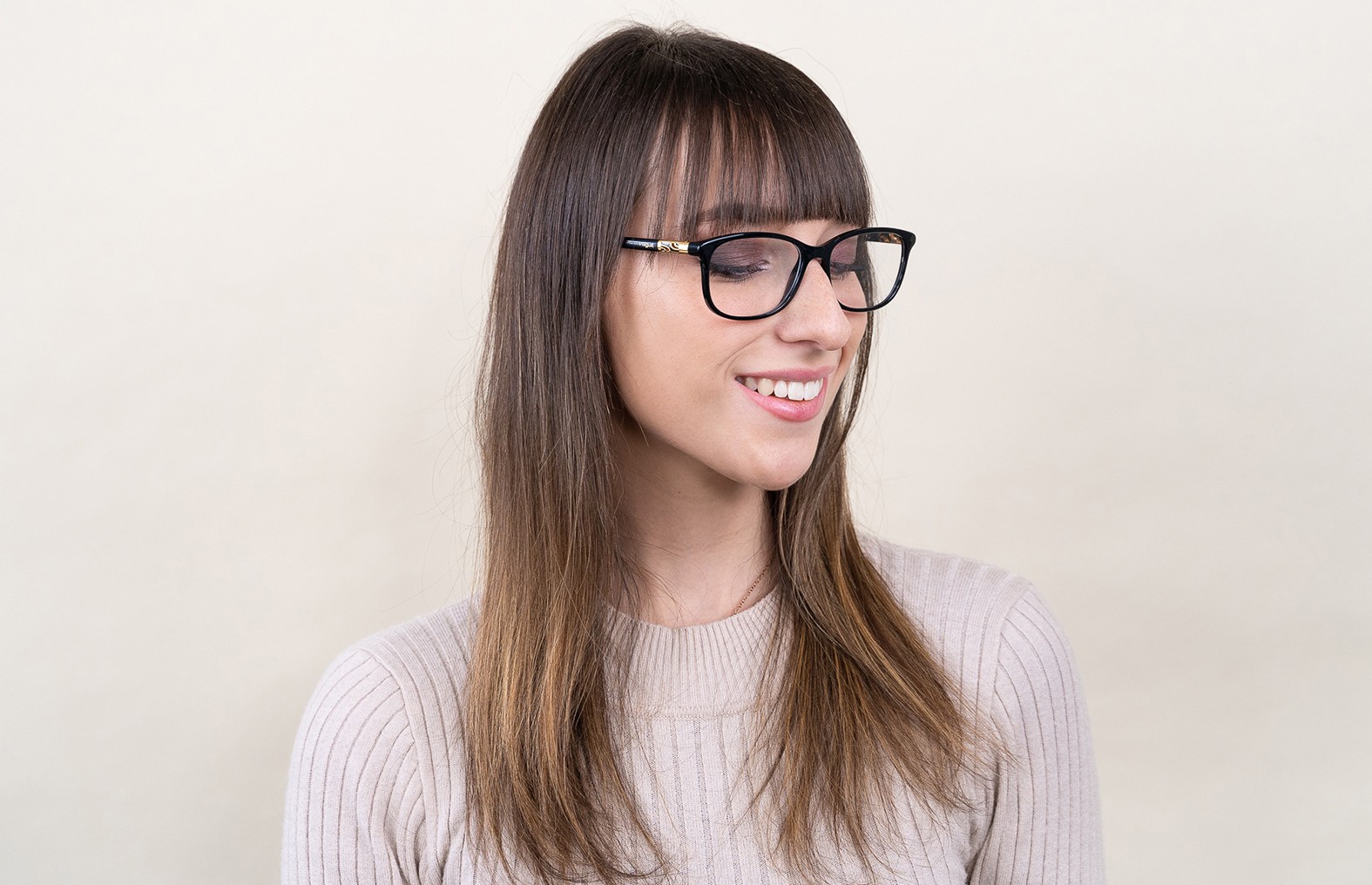 - Черный цвет оправы идеально сочетается с холодным оттенком кожи и светлыми светлыми, светло-каштановыми или черными волосами.
