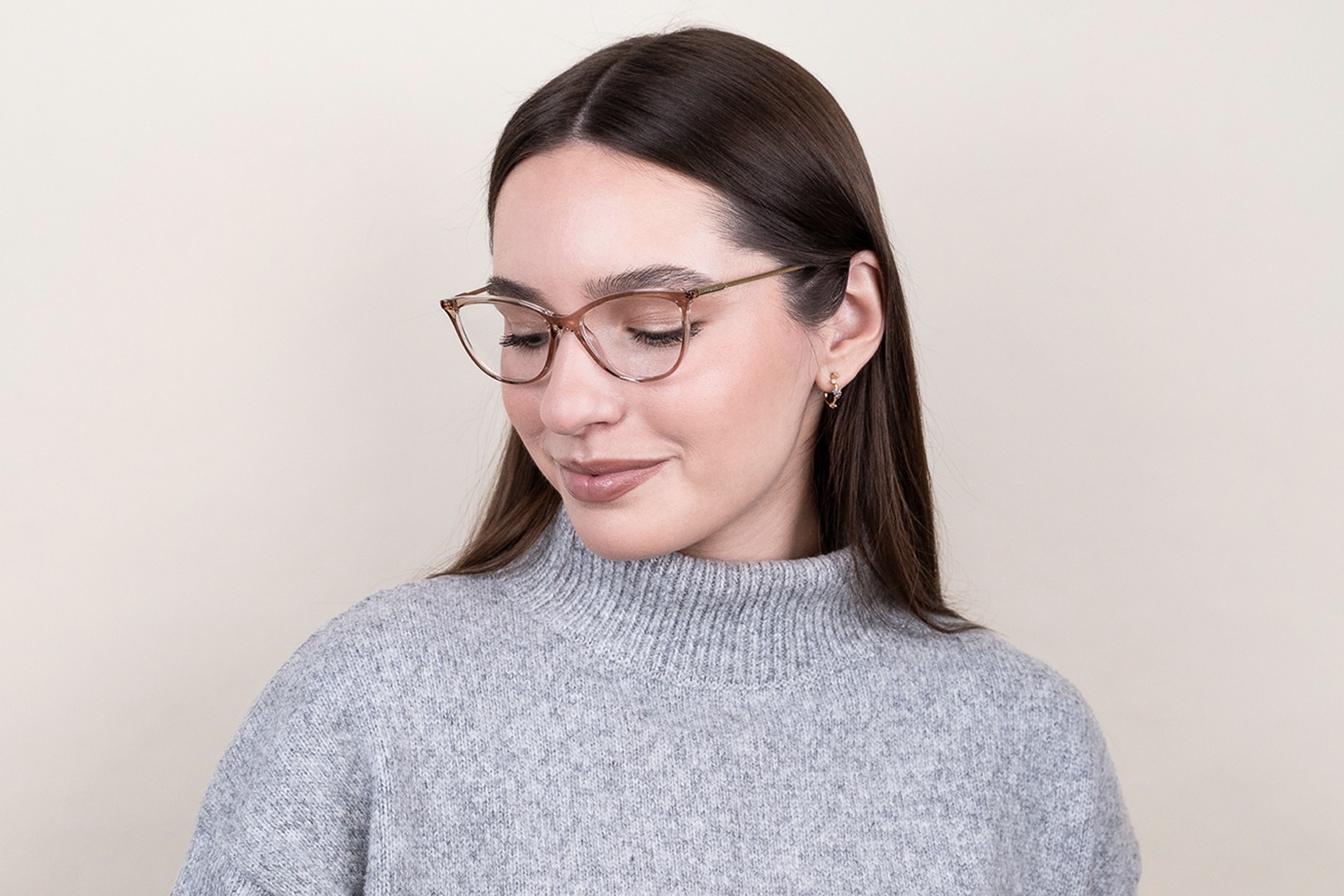 - Коричневый цвет оправы идеально сочетается с теплым оттенком кожи и светлыми коричневыми, черными или темно-русыми волосами.